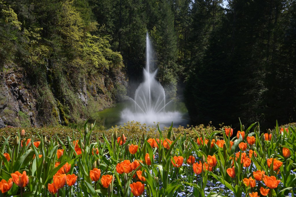 After the Japanese Garden, you will discover the splendid Star Pond—originally designed for Mr. Butchart's collection of ornamental ducks, this twelve-point pond, surrounded by colourful annuals (spring/summer/autumn), has a charming frog fountain rising from its centre.